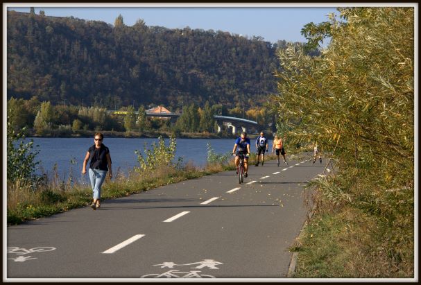 The cycle path leads along the right bank of the Vltava River to the southern parts of Prague (Braník, Hodkovičky, Modřany, Komořany to the bridge in Zbraslav). Bicycle trail has asphalt base, a flattened profile and thanks to it is used not only by cyclists but also by in-line skaters.